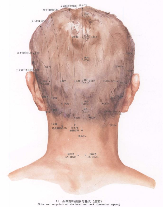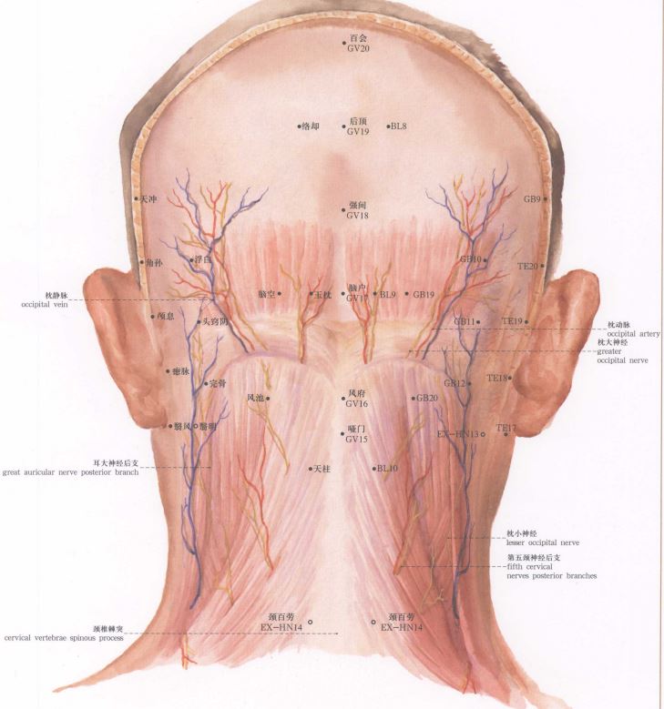 Skins and Acupoints on the Head and Neck (Posterior aspect) 頭頸部的皮膚與腧穴(後面)
