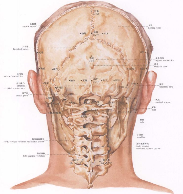 Skeletons and Acupoints on the Head and Neck (posterior aspect) 頭頸部的骨骼與腧穴(後面)