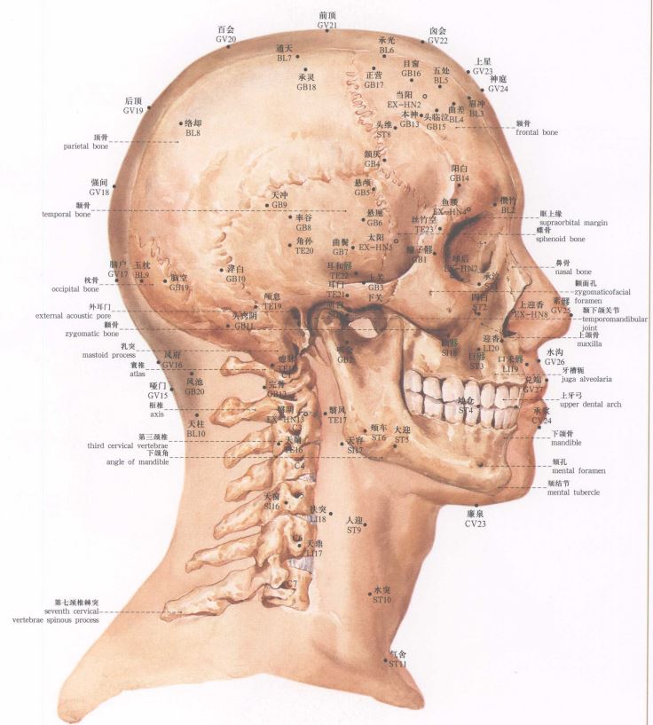 Skeletons and Acupoints on the Head and Neck (Lateral Aspect) 頭頸部的骨骼與腧穴(側面)