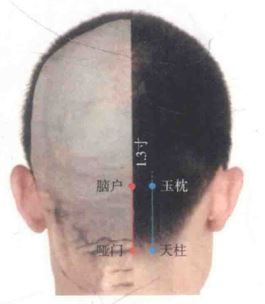 - In the nape, 1 unit directly above the middle of the posterior hairline, directly below the external occipital protuberance, in the depression between the trapezius muscles on both sides.在項部,當後髮際正中直上1寸,枕外隆突直下,兩側斜方肌之間的凹陷處。