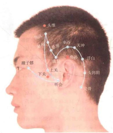 - Side of Head, Occiput, and supplement with LI-11 (Quchi) or M-HN-9(Taiyang).頭側、枕骨,輔以曲池或太陽