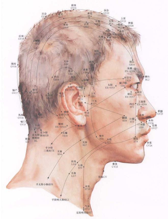 Skins and Acupoints on the Head, Face and Neck (Lateral Aspect) 頭面頸部的皮膚與腧穴(側面)