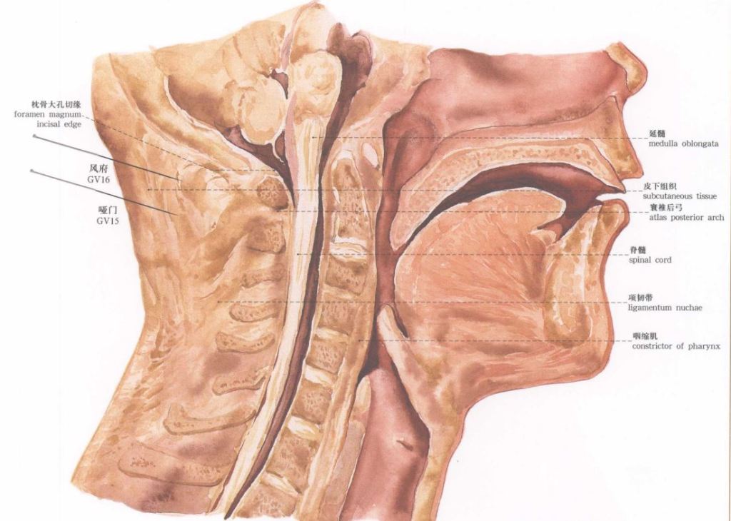Sagittal Section of Fengfu (GV16) 風府橫斷面