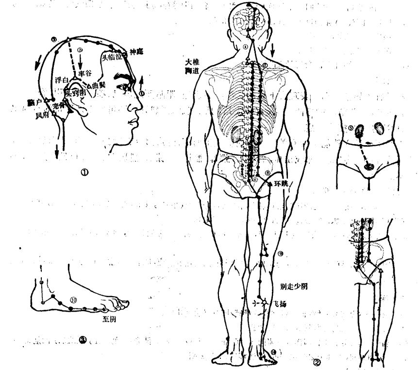bladder meridian point of Foot Taiyang tour route 足太陽膀胱經巡行路線