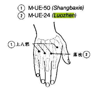 M-UE-24 (Luozhen 落枕穴), point(s) of pain 痛點.
