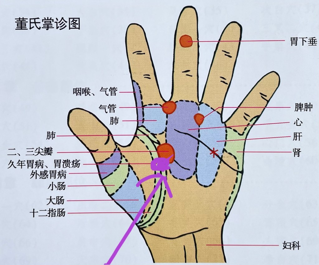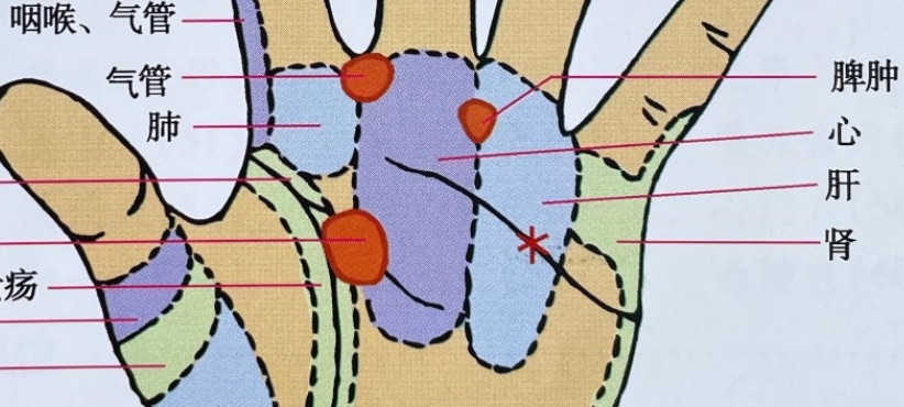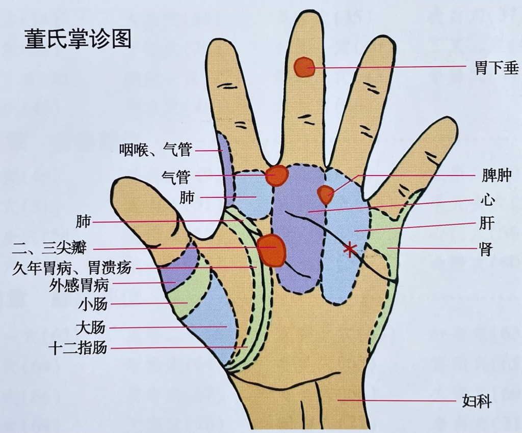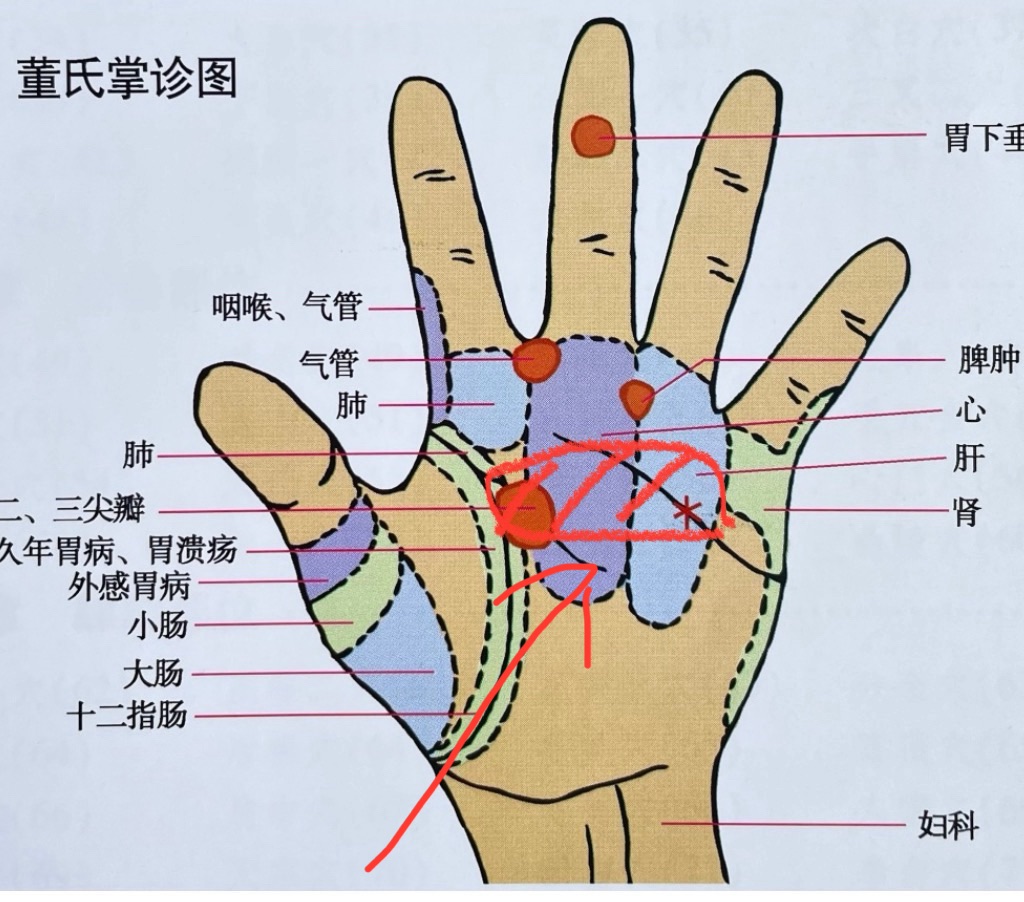 二、三尖瓣至肝區(標有“*”記號附近),同時出現深青黑色為死診;董師名之曰“生死關”